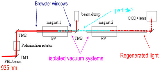 - Robilliard, C.; Battesti, R.; Fouché, M.; Mauchain, J.; Sautivet, A.M.; Amiranoff, F.; Rizzo, C. No “Light Shining through a Wall”: Results from a Photoregeneration Experiment. Phys. Rev. Lett. 2007, 99, 190403. [Google Scholar] [CrossRef] [PubMed]