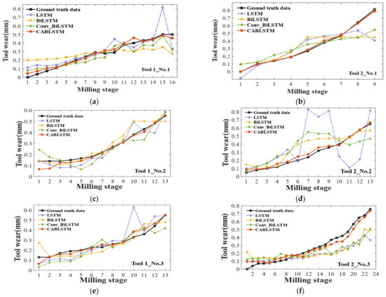 - The performance was tested using the public milling tool dataset; the CABLSTM model outperformed other traditional models in RUL prediction. In addition, the model was applied to tool data under different working conditions and was demonstrated to exhibit favorable robustness.