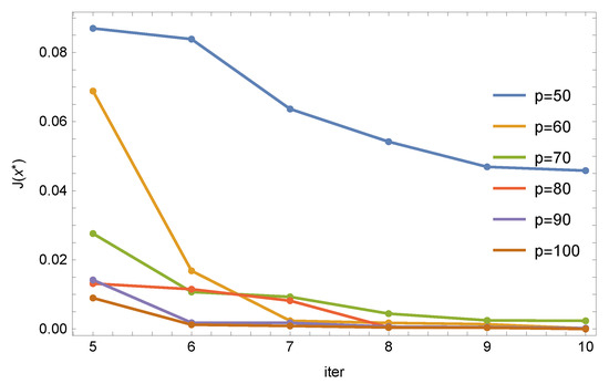 As a measure of algorithm convergence, we use the maximum coefficient of variation, the size of which represents the repeatability of the obtained results in many samples. Assuming that , for are n independent solutions of the same problem obtained in n independent trials, the maximum coefficient of variation is given by the formula: