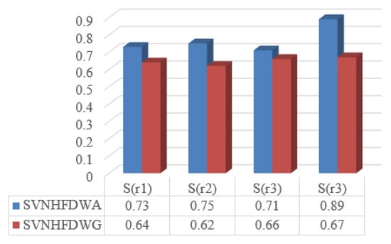 The comparison bar chart of ranking with SVNHFWA and SVNHFWG is shown in Figure 2.