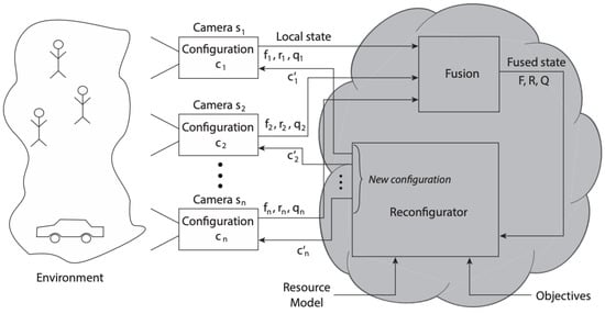 - Rinner, B.; Esterle, L.; Simonjan, J.; Nebehay, G.; Pflugfelder, R.; Dominguez, G.F.; Lewis, P.R. Self-aware and self-expressive camera networks. Computer 2015, 48, 21–28. [Google Scholar] [CrossRef]