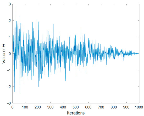 The change of H over the course of 1000 iterations.