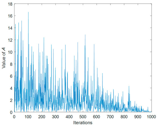 The change of A over the course of 1000 iterations.