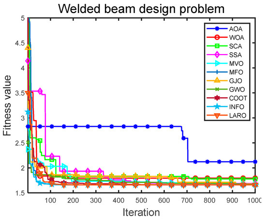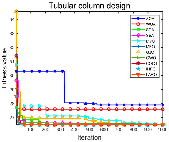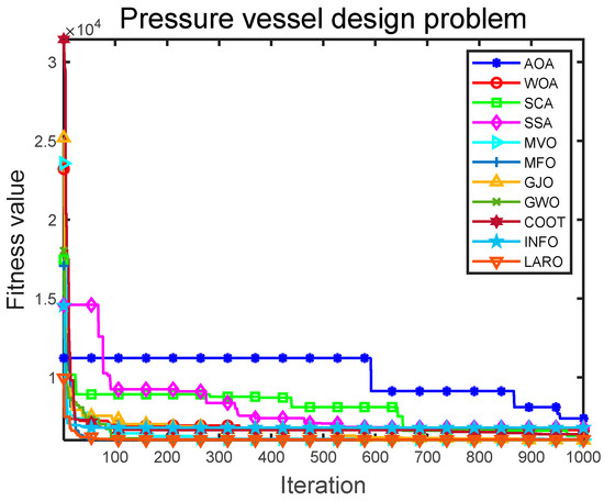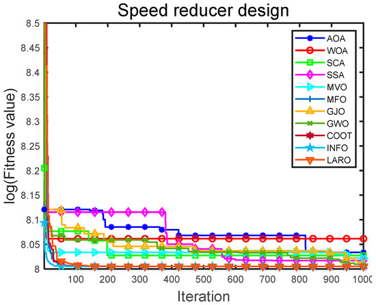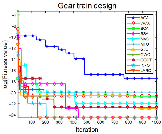 Convergence iteration plot of LARO and comparison algorithms in TCD problem.