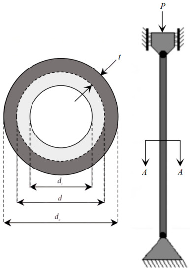 The TCD problem is to ensure that the cost of designing a homogeneous column with a tubular cross-section is minimized under the condition that six constraints are satisfied with suitable compressive loads [4]. The schematic design diagram of the TCD is illustrated in Figure 24. Two material-related conditions to be established for the TCD problem include yield stress σy = 500 kgf/cm2 and modulus of elasticity E = 0.85 × 106 kgf/cm2. The mathematical model of the TCD problem is given below.