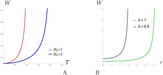 These calculations show that the acceleration W of the E-trajectory with “” in the inertial coordinate system () increases with increasing of the inertial time as . If , this acceleration increases to infinity, and it decreases to 0 when .