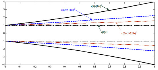 Table 25 describes the second case, where the cross-sectional area of the nanobeam changes parabolically according to the polynomial . This means that we are studying the effect of changing the nonuniformity parameters and on the deflection of the beam. In addition, Table 25 presents a comparison of the deflection of the nonuniform beam changes linearly and parabolically, for the three sets of boundary conditions.