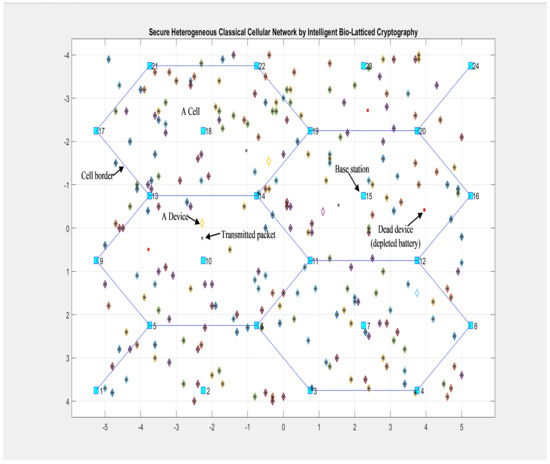 Secure heterogeneous cellular network in traditional mode with quantum-resistant intelligent bio-latticed cryptography.