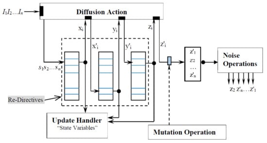 The update handler maintains a set of M state variables that are used to perform specific actions on the re-directive lists, mutation operation, and the noise operations. Table 4 lists these state variables, their descriptions, and how they are updated. We associate a state variable VLi with each layer Li of the re-directives. These state variables are used to perform some reordering to the elements of the corresponding layer. We associate two state variables VM1 and VM2 to the mutation operation, where the first variable is used as an activator for the mutation operation and the second is used as a mutation value. We finally associate two state variables VSL and VLp to the noise operations to support its functionality.