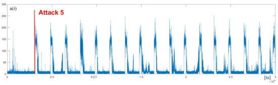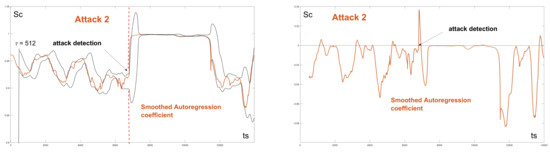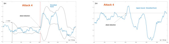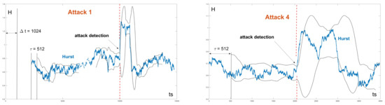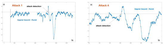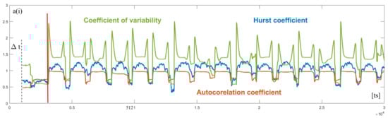 The success of using the considered coefficients also depended on the length of the time window , in which the values of the coefficients were calculated. In the presented experiments, we used ts for the purpose of comparing AR(1) and the coefficient of variation with the Hurst coefficient. As the value of increased, the parameter values were smoothed out and the attack increased, but the computational complexity increased, especially with the H coefficient.