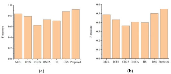 Comparison of F-measure values of different methods. (a) Cosal150 dataset; (b) Coseg183 dataset.
