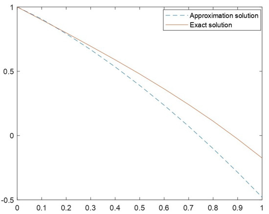 Figure shows the approximation solution compared to the exact solution with h = 0.1 for Example 2.
