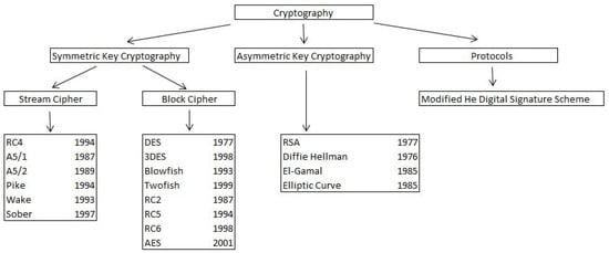 The purpose of cryptography is to design and analyze protocols that prohibit third parties or the general public from reading private communications. The three prevalent categories of cryptography are symmetric cryptography, asymmetric cryptography and protocols. In this paper, a modified-He digital signature scheme is proposed using a one-way hash function. The paper focuses mainly on asymmetric key ciphers because they satisfy most of the security service requirements. The cryptography classification is shown in Figure 1. No further algorithmic requirements are required for design of protocols as symmetric and asymmetric cryptosystems are sufficient. In general, a stream cipher is faster than a block cipher. A5/2 is a stream cipher that replaces A5/1, voice used to protect the privacy of voice calls in the GSM cellular telephone protocol.