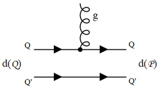 Here, d and denote the diquark and antidiquark, and are the initial and final diquark momenta, respectively, , are the on-shell diquark energies (similar to Equation (3)):