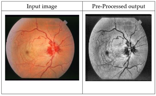 Using computer-aided segmentation of retinal pictures and visual assessment, preprocessing techniques aims to improve disease detection probability. Colour fundus images from the two datasets are scaled to 128 by 128 pixels in the first step of the process. These images are made up of a red, green, and blue fundus pictures. Because of the high contrast between the blood vessels and the backdrop and the best contrast between the optic disc and the retinal tissue, the green channel of the RGB image is employed for preprocessing. The veins of the choroid are clearly visible in the red channel. The retinal vesicles are clearly apparent, although the green channel has less contrast. Then, the images are changed to greyscale to speed up processing. Localization of the optic disc will be completed using the greyscale image. Noise and lack of retinal morphological information make the blue channel unsuitable for detection.