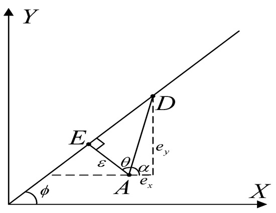 As shown in Figure 2, the contour error of a line can be accurately calculated. Given the actual point , expected trajectory point , then tracking error could be defined as . Given direction vector of the planar line , and is the included angle between the vector and , . Then the contour error of the planar line could be expressed as,