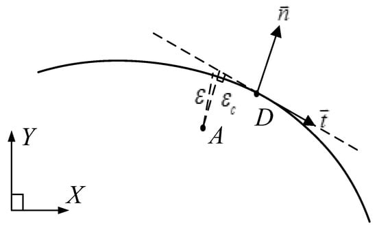 For common curves, it is difficult to obtain the geometric description of the desired trajectory, thus it is difficult to calculate the contour error of the common curves. However, the calculation of the contour error about a common curve can be simplified as the tangency distance between the actual point and the corresponding desired point, as shown in Figure 3.