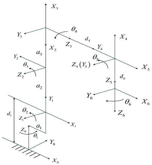 The link coordinate frame of the SR4C industrial robot is shown in Figure 5.