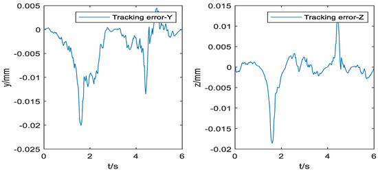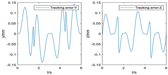 Figure 11 shows the uniaxial tracking error chart of the NURBS curve, Figure 12 shows the uniaxial tracking error chart of the five-order polynomial curve, and Figure 13 shows the contour error comparison chart of the NURBS curve and the five-order polynomial curve:
