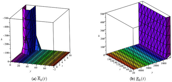 Similarly, the second term of the human-infected, quarantined, and recovered case of infinite sum of Equation (8) are given in Equations (11)–(13), respectively.