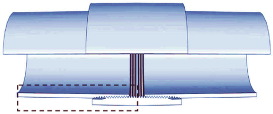 Figure 5 depicts the API connection premium connection geometry. The following is a summary of the box, pin, and thread geometry. Figure 5a depicts the box’s applied parameters. The length of the box is 234.95 mm, the outside diameter of the box is 153.67 mm, and the inside diameter of the box is 143.26 mm. The box thread is enlarged to compose the thread’s geometry parameters. The thread thickness is 4.72 mm, the distance between threads is 7.58 mm, the pitch is 15.25 mm, and the thread length is 7.04 mm.