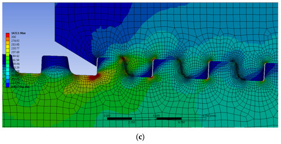 For the parameters relating to the stabbing flank upper corner radius, the original and optimal values were compared. In order to facilitate easy recognition of the data, the von Mises stress was tabulated, concentrating on the areas with the highest stress.