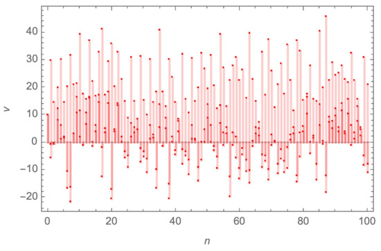 Figure 5. The first 100 points from the 1D array obtained from the 3D coordinates of the Lorenz system solution for the values and . - (b)