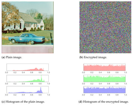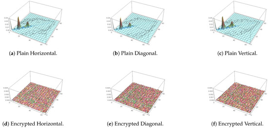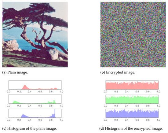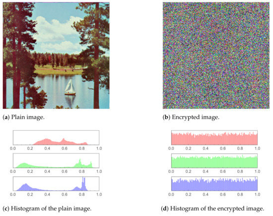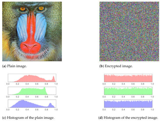 An encryption algorithm’s performance is evaluated by how well it can withstand various visual, statistical, entropy, differential and brute-force attacks. In this section, the suggested image encryption algorithm’s numerical findings are presented and discussed along with a comparison to counterpart algorithms from the literature. The various analyses were run on Wolfram Mathematica® v.13.1. The utilized computer had the following specifications: 2.9 GHz Intel® CoreTM i9, 32 GB. For the sake of these tests, values used as keys for the experimental encryption process are assigned as follows: and . Multiple images that are commonly used in image processing applications and experimentation were utilized, all of dimensions of , unless otherwise stated. The performed tests are: