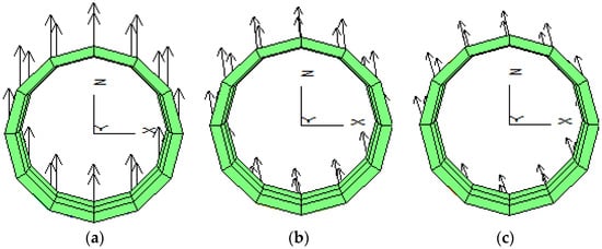 Influence of different reinforcement forms of reinforcement on tunnel in the lower area: (a) Reinforcement form 1; (b) Reinforcement form 2; (c) Reinforcement form 3.