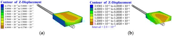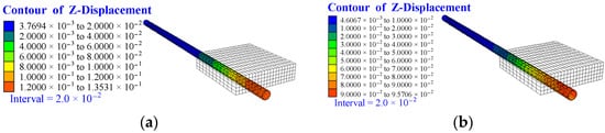 Vertical displacement distribution of the tunnel in the lower area: (a) Without reinforcement; (b) With reinforcement.