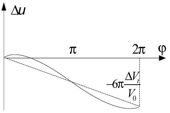 We determine ΔVt in Equation (15) and ΔVr in Equation (16) from Equations (11) and (12) and use them in Equation (14). Equation (14) is preferred over Equation (13) because it has a greater deviation of Δn than in Equation (13), which reduces the effect of the error in the determination of the value of Δn. We obtain Equation (17) for determining φ. Having determined φ, we use it in Equations (15) and (16) and determine ΔVt and ΔVr.