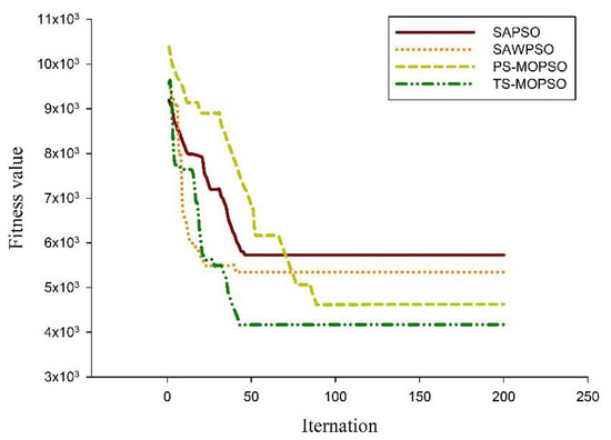 (1) PS-MOPSO [30]: This algorithm is a PSO with Pareto-optimal method by which to obtain the optimal solution set. A nonlinear adaptive inertia weighting strategy is used to update the particle velocity and position to improve the algorithm convergence and finishing computational performance. Finally, the optimal solution is selected from them by comparison.