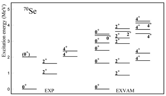 Excited Vampir spectrum of the lowest few 0, 2, and 4 states in Se (EXVAM) compared with the data [20] (EXP).