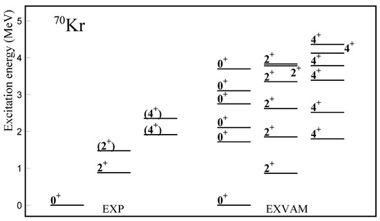 - Petrovici, A.; Schmid, K.W.; Faessler, A. Microscopic aspects of shape coexistence in 72Kr and 74Kr. Nucl. Phys. A 2000, 665, 333. [Google Scholar] [CrossRef]