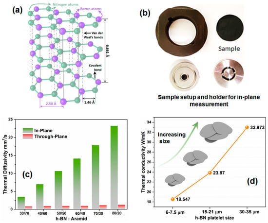 - Yoo, J.-H.; Maiyalagan, T.; Yi, S.C. Thermal conductive thin, flexible composite sheet of boron nitride aggregates and alumina for enhanced through plane conductivity. Ceram. Int. 2022, 48, 29183–29189. [Google Scholar] [CrossRef]