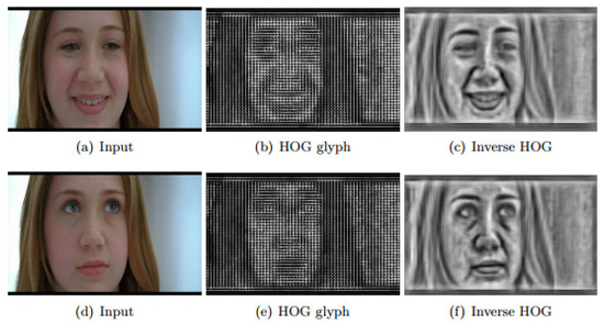 Researchers found the facial points using the Bezier volume deformation tracker. Two successive frames are matched to get the motion information. Geometric features are calculated using AAM models on input faces. They used a database and compared different AAM techniques. The disadvantage of this method is that facial parts are manually initialized. They introduced a geometric descriptor called an emotion image (EI). The facial point detector provides input to an undirected map that further derives a visual map. They stated that geometric and appearance features performed similarly, whereas geometric features highly depend on accurate location information of facial points. The detection of facial points is accurate in controlled conditions such as research labs compared with real-world environments. If the facial parts are not detected properly due to any error, then this error passes on to the geometric feature representation [29]. Description of Appearance features is presented in Figure 2.