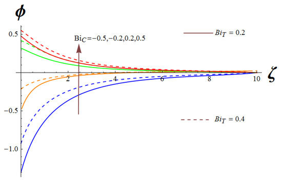 The related boundary restrictions for the above-mentioned flow with thermal/mass convection are as follows: