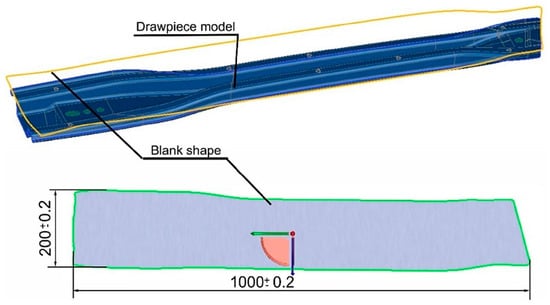The finite element method (FEM) analysis of the hot stamping process was performed using the Autoform v.10 software system. The first step of the analysis concerned the shape definition of the flat blank with a specific tolerance of the outline (Figure 3). For this purpose, a dedicated Autoform software module was used for the so-called reverse analysis.