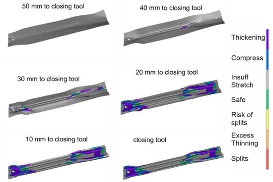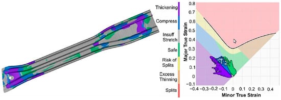 Figure 9 shows the results of the door beam analysis in the form of the FLD diagram visualization at different beam forming stages.