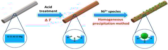 - Huo, C.; Yang, H. Attachment of nickel oxide nanoparticles on the surface of palygorskite nanofibers. J. Colloid Interf. Sci. 2012, 384, 55–60. [Google Scholar] [CrossRef] [PubMed]
