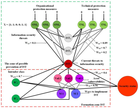 Next, we investigated the practical application of the selected modeling methods to determine the structural and functional relationships of information security events in IS and their probabilistic values.