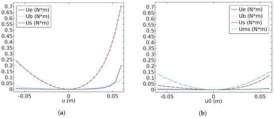A last remark must be devoted to the different energetic component of the two models. These contribution are plotted vs. the prescribed displacement in Figure 10a,b. In these figures, it is clearly observable that some components of the deformation energy are also non-symmetric in the 2-field model, as is natural, but their effect on the macroscopic behavior of the metamaterial is shaded by the contribution due to the micro-shear deformation.