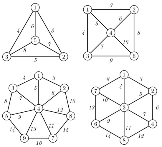 Thus, all vertex labels are consecutive numbers and the set of weights of edges , , consists of consecutive numbers, more precisely,