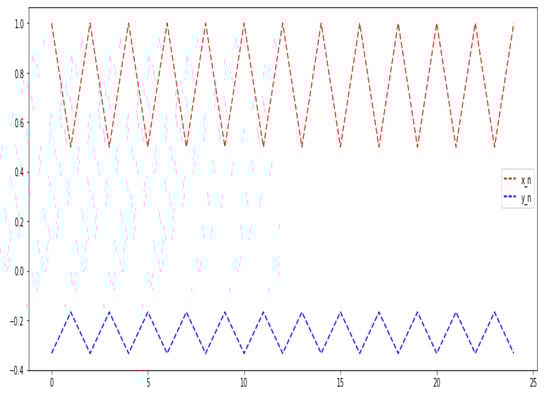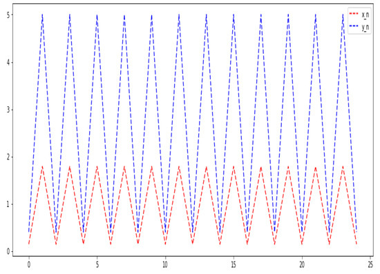 Similarly, it is not difficult to show that for all and . Because and , we must have and for all . Thus, the solution has period 2. □