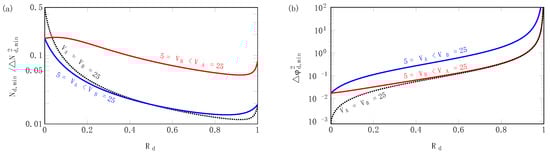 When the interferometer is operated at the dark fringe, , the noise reduces to 1, meaning that most of the amplified noises from PA1 are canceled, and only vacuum noise is left by destructive quantum interference. Meanwhile, the fringe size of SUI is increased by a factor of (see Section 2.2). Therefore, the SUI increases the signal while it keeps the noise at the vacuum level, leading to an enhancement in signal-to-noise ratio for phase measurement compared to the MZI [76]. The noise relation can be seen in Figure 2a,b.