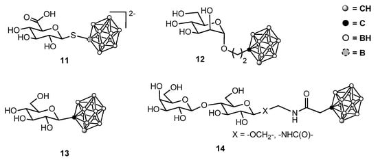 Some sugar derivatives containing dodecaborate clusters also appeared recently in the literature. A possible problem related to dodecaborate-sugar conjugates is the presence of a charge on the boron cluster, which can interfere with transport proteins.