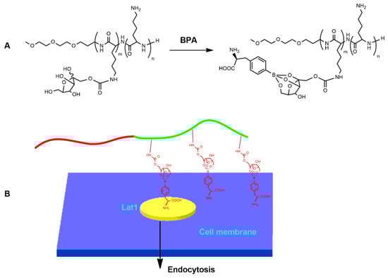 (A): Loading of the polymer with BPA; (B): internalization of the boronated polymer through Lat1.