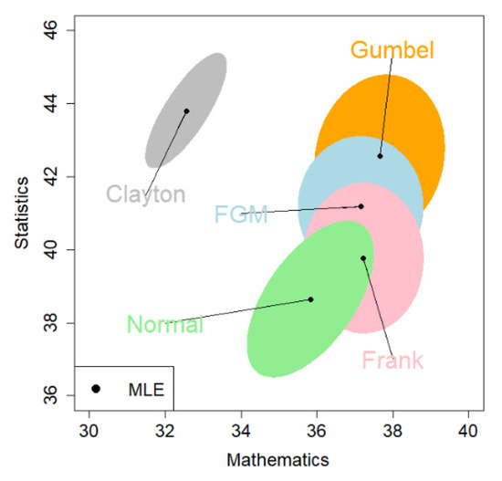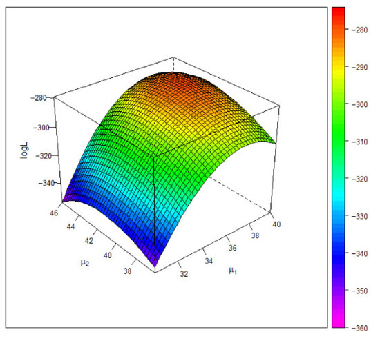 where is a real line. The MLE does not have a closed-form expression except for the normal copula. Thus, the MLE can also be obtained by the Newton–Raphson algorithm or some software functions (e.g., the R functions optim or nlm). One may also apply our R package CommonMean.Copula [26], which will be explained in Section 6.