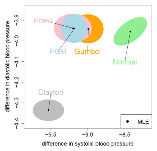 As an alternative to the bivariate normal model, recent papers have adopted “copula” models for bivariate meta-analyses [3,5,12,13,14,15]. Copula models are flexible as they allow a variety of dependence structures. Copulas consist of both symmetric copulas (e.g., the normal copula) and asymmetric copulas (e.g., the Clayton copula). Copula models have become very popular in all areas of science by replacing the traditional multivariate normal models. In astronomy, Takeuchi [16] constructed the bivariate luminosity density functions using the FGM copula; see reference [17] for the application of the FGM copula to engineering. In ecology, Ghosh et al. [18] applied copulas to model the dependence structure in environmental and biological variables. In environmental science, Alidoost et al. [19] used bivariate copulas in the analysis of temperature. See the survey of [20] for applications to energy, forestry, and environmental sciences. The books of [21,22] are devoted to the applications of copulas in survival analysis; see also references [11,23,24,25].