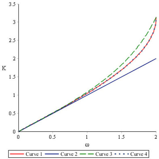 In Figure 2, curves 3 and 4 demonstrate the functions and , respectively. A significant improvement in the approximation compared to the classical continuous case is observed.